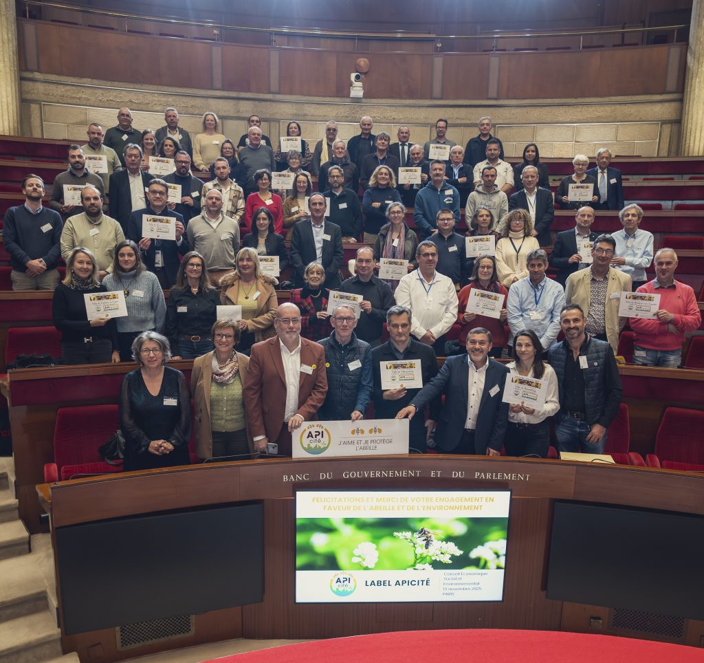 La cérémonie officielle du label APIcité® 2025 s’est tenue le 19 novembre au Palais d’Iéna, siège du Conseil Économique, Social et Environnemental. Cet événement a honoré 150 collectivités lauréates, récompensées pour leurs actions en faveur de la protection des pollinisateurs.